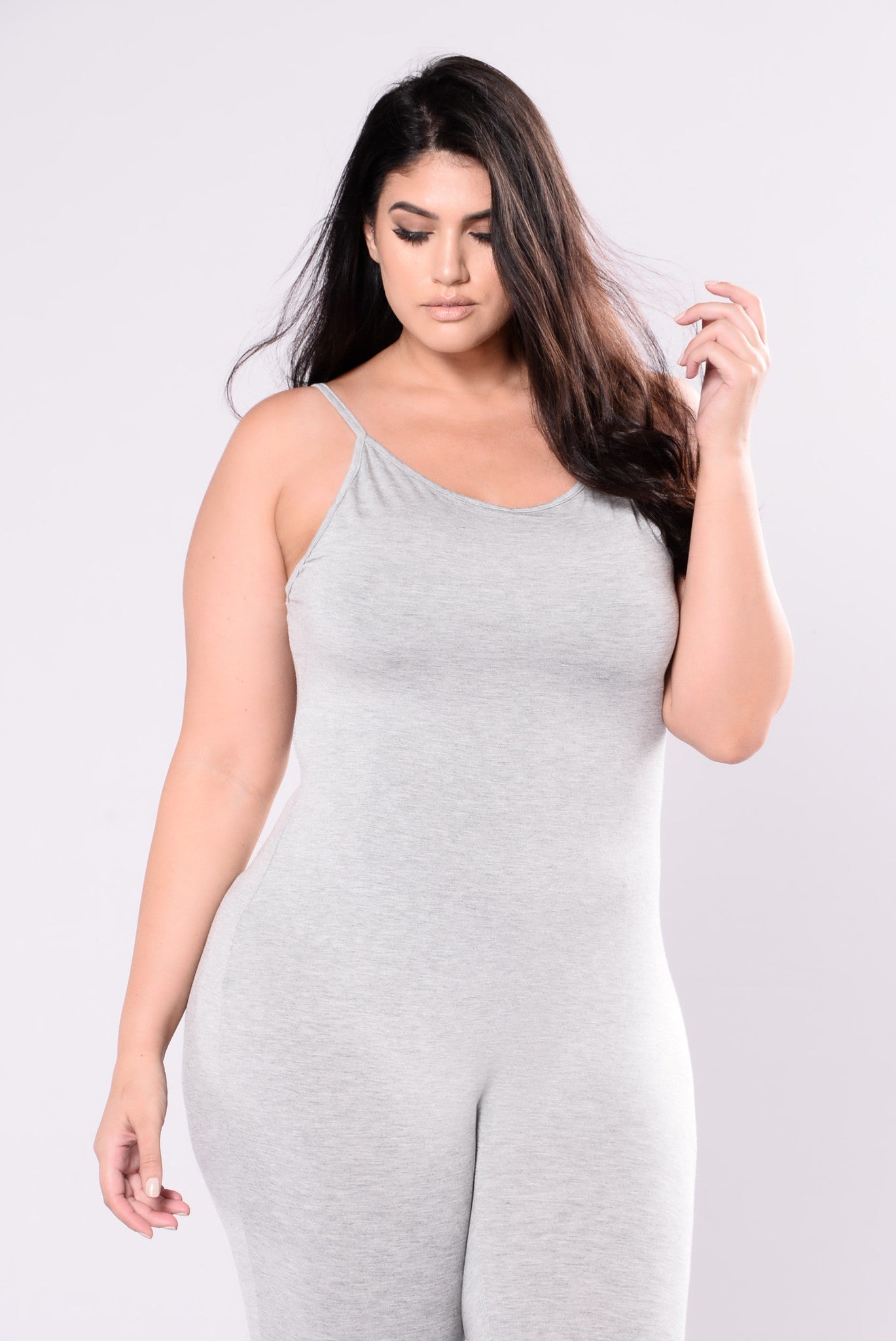 Designed with modern fashion in mind, this heather grey jumpsuit features a fitted cut that highlights your curves while remaining versatile. Pair it with sneakers for a casual outing, or dress it up with heels for a night out. The spaghetti straps add a feminine touch to your look, making this jumpsuit both trendy and timeless.